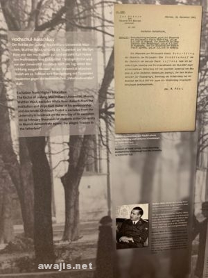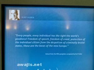 展示は関係学生や教員の生い立ちから運動に関わる過程やその後などを克明に追っており、配布されたビラなども展示されていましたが、ドイツ語がわからないので、一次資料は読み解けませんでした。すべてじっくり見ると、ゆうに1時間はかかると思います。最後は、もう少しのところで職員の女性に閉室だと急かされましたが、英語でまくし立てて煙に巻いて居座り、最後まで読み切りました。