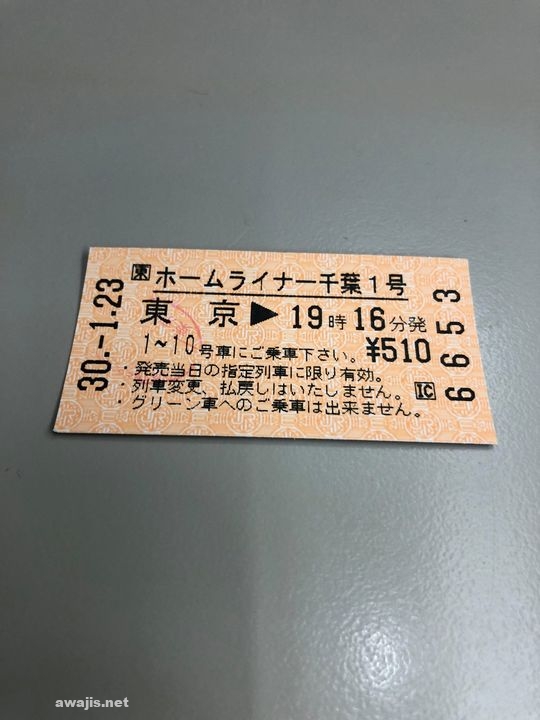 東京駅19:16発のホームライナー千葉(510円)は、同19:11発の快速成田空港行き(グリーン車770円)には千葉で追いつけない!!