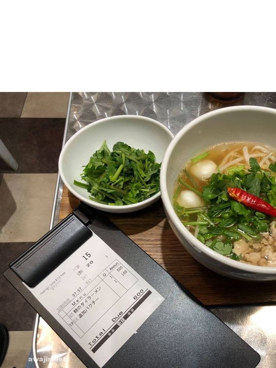 東京駅グランスタ内のMango Treeで、平日朝限定で500円で供されているタイの汁そば、これまでは「パクチー多め」は無料でお願いできましたが、それに代わり100円の「パクチー追加」しかなくなりました。