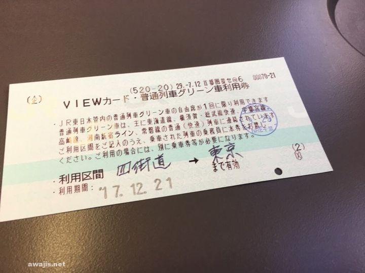 VIEWカードのポイントで請求したグリーン車利用券が届いたので、早速使ってみた。