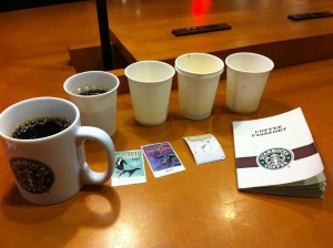 時折立ち寄る恵比寿のスターバックス。ラテは太りそうなので、最近はもっぱらドリップコーヒーひと筋。ステッカー集めも楽しみ。