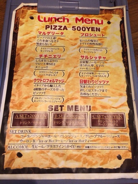 あたりを散歩でもして時間を潰そうと歩いていたら、気になるピザランチの看板が。ワンコインで本格石窯焼きピザ。11時からランチ営業。