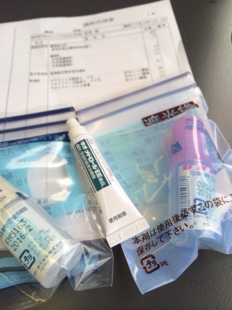 ついでに、よくひび割れる右の目尻について尋ねたら、これも分泌物の影響らしい。軟膏塗ればすぐ治るって。