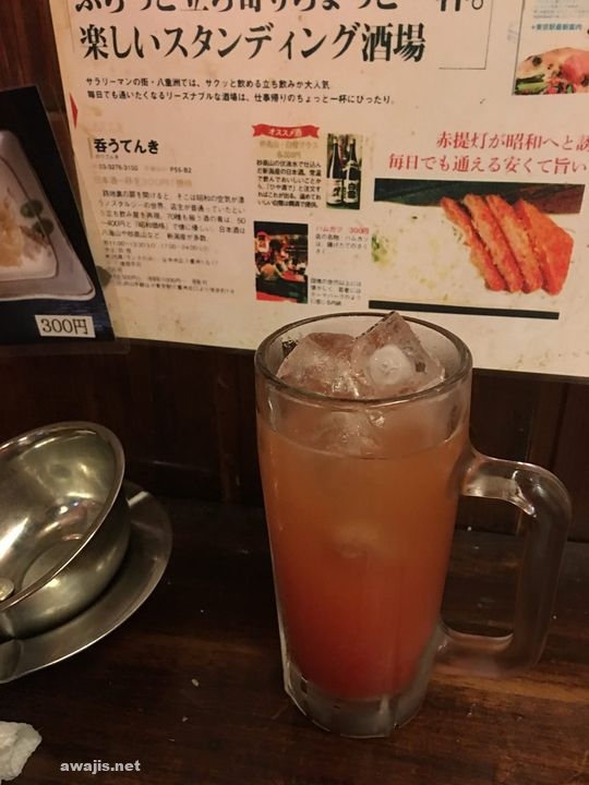 帰り途、八重洲でひと息つくべく、いつもの菊正宗樽酒の方向に向かうも、金曜夜で大混雑のせいか、縄のれんくぐって顔出すも、大将が一向に気づいてくれない。うーん、歳かなぁ。自分も気をつけよう。 そこで無粋に呼びかけなどはせず、静かに退散、次の候補へ。 同じ八重洲昭和エリアある立ち飲みの「呑うてんき」へ。木戸を開けると、顔なじみの中国人店員がすぐに見とめてくれて、カウンターに強引に隙間を作って案内してくれた。 ここはここで、また違った空気と味わいでいいんだけど、おじさんには立ち飲みはチトツライのよ。 ここでは日本酒より、アジフライ食いながら、トマト酢サワーとかがいい感じ。