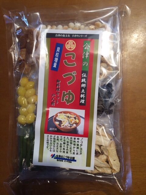 おもしろい地元アイテムも見つけました。会津地方の名物、こづゆの簡単調理セット。貝柱の干物、干し椎茸、木耳、ぎんなん、ゼンマイ、豆麩がパッケージされていて、簡単な作り方も添えてあります。これに、里芋、にんじん、白滝を加えて、こづゆを6食分作れます。
