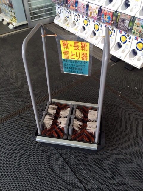 猪苗代のスーパーマーケット入り口で目にした、いかにも雪国らしいアイテム。電気仕掛けではなく、自分で足を動かして、靴底と側面の雪を同時に取れる優れもの。