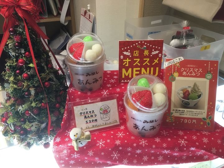 和風甘味のみはしですら、クリスマス商戦に便乗して、クリスマスセットとは。赤と緑混ぜりゃ何でもいいなら、年末の追加課題もカラー印刷でクリスマス限定にすれば学生も喜んだか?