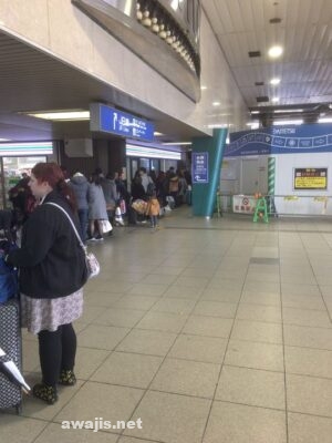 注文が終わり、土産物購入してコインロッカーに預けて身軽になって次の目的地に、と思って嫌な予感。駅中のコインロッカーが使用中、コインロッカー難民とひと目でわかる同士が右往左往。