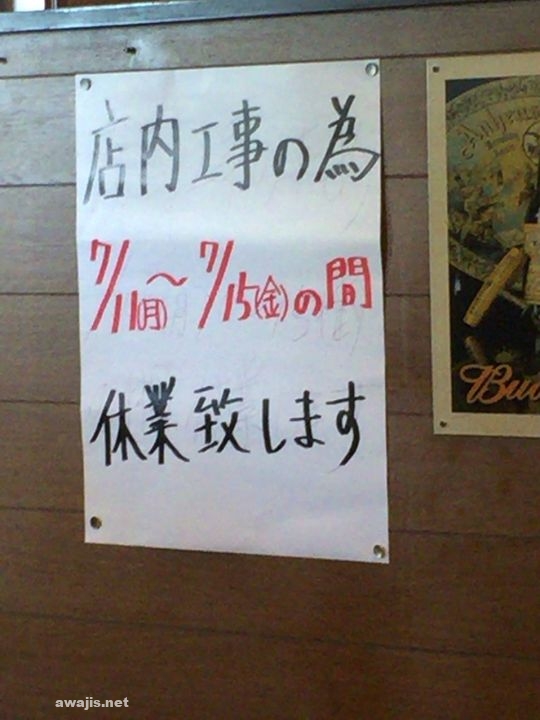 大東文化大前のステーキ屋さん、店内工事で臨時休業のお知らせ。