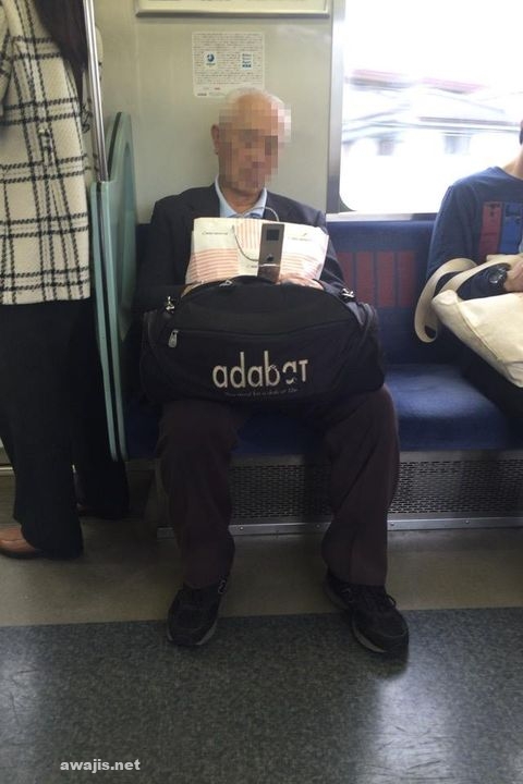 初めは隣席にドンと紙袋を置いていて、混んできたので渋々膝の上に引き上げたが、その後も だらしなく斜めに座って1.5人分の席を占有し続け、手に持ったガラケーからはピッピとキー音楽鳴らしまくり。