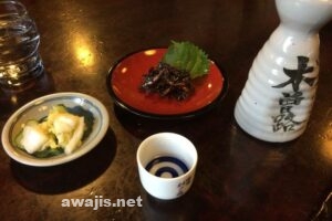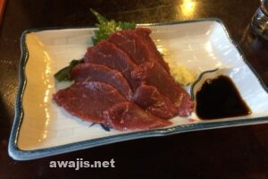 任務終了。キッチリ仕事のあとは、シッカリ飲んで電車待ち。 まずはイナゴの佃煮と馬刺しをアテに、なかのりさを冷やで。 駅前の楽々亭にて。