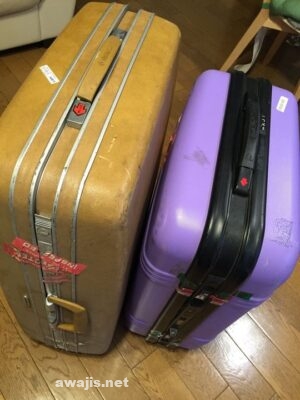 茶色の方はなんと、私が高校1年の頃渡米する前に買ってもらったものなので、35年もの。でもさすがサムソナイト、キャスターのローラーゴム部分が風化してしまった以外、目立った損傷はなし。まだ行けそうな気もしますが、旅先で壊れるのは恐いので、ここらで勇退していただくことにしました。