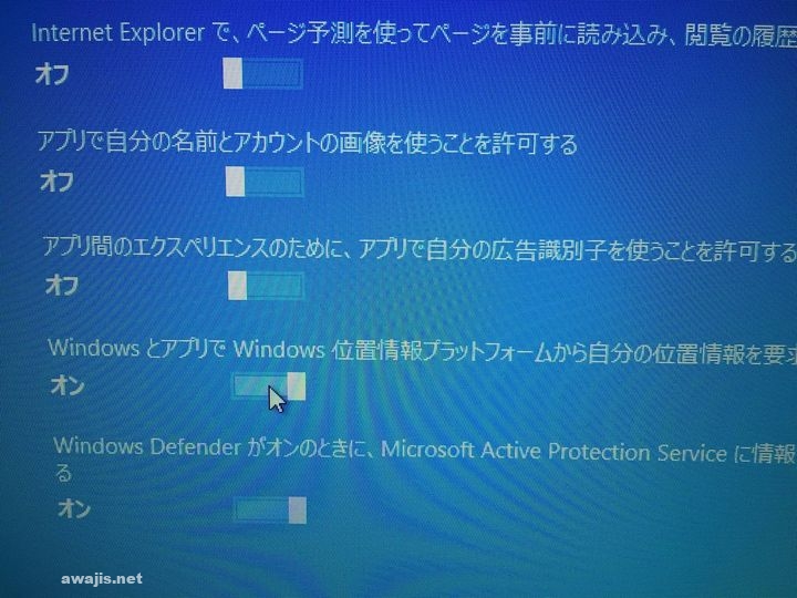 MSの推奨設定は胡散臭いので、手動でインストール後あれこれ設定していると、「アプリ間のエクスペリエンスのために、アプリで自分の広告識別子を使うことを許可する」って、理解不能な項目。
