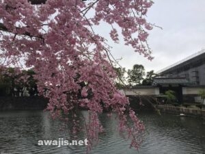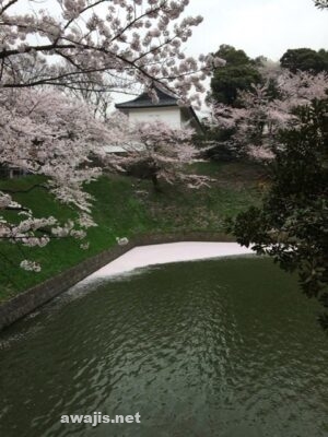 しかも今日はかなりの強風。桜吹雪がお堀の水面に吹き溜まり、ストロベリードリンクのようになっていました。
