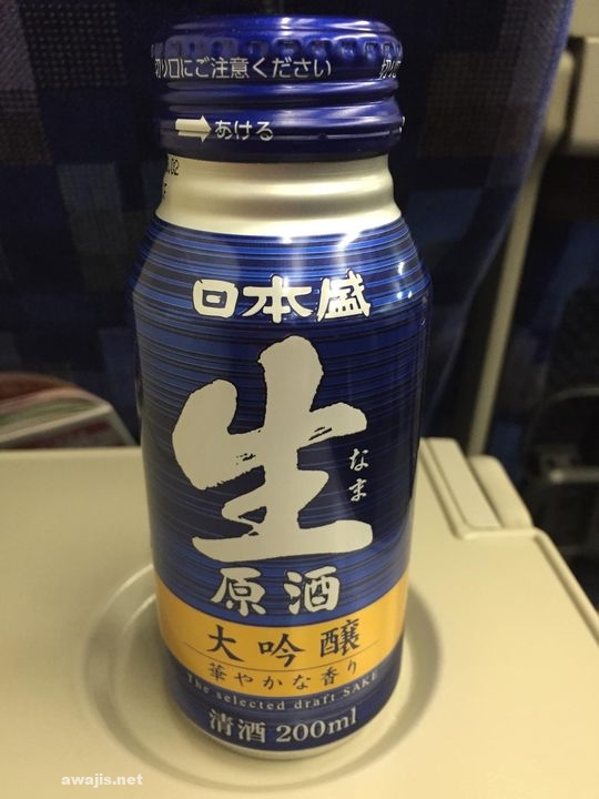 特急列車のお供を買い求めて長谷川酒店覗いたら、おそらく新製品の見慣れないアルミボトルに引っかかりました。 日本盛生原酒大吟醸。やや甘口ながら、謳い文句通り華やかな香り。