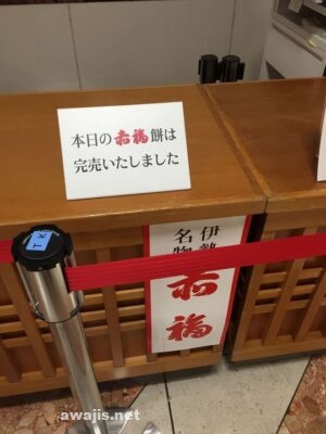 なーんと、あの赤福(赤餅ぢゃない!)が東京駅構内で限定販売。掲示を見てすぐ向かいましたが、残念、すでに完売でした。