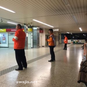 夜10時半近く、電車到着時以外はほとんど人通りのない駅改札で、まだ頑張る夜立ち。