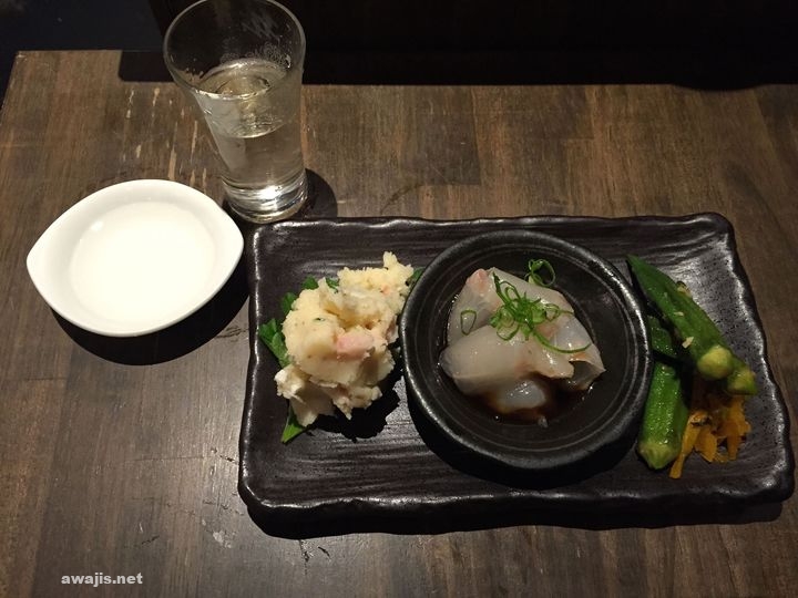 ちょっとだけね。魅力たっぷりの立ち飲み屋に吸い込まれちゃいました。 酒も安いし、つまみも豊富。写真は、地元に敬意を表して呉春と、おまかせあて三種盛り450円。充実してて、これで三合いけちゃうじゃん。 テレビの脇には、「ボートレースの放映は18時までとさせていただきます」とあるけど、各席にはボートピアの券購入のマークシート完備。とてもいい雰囲気。