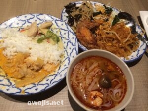 割とひつこいタイプなので、昨日来の東南アジア熱冷ますべく、新装開店の店に来てみました。 前よりかなり手狭ですが、食べ放題ランチの品数はほぼ従前通り。前と違うのは、ランチには目玉焼きのサービスがつくらしいですが、私は無理言ってトムヤムクンに入れる麺に変えてもらいました。 予想通り食べ過ぎて苦しいです。