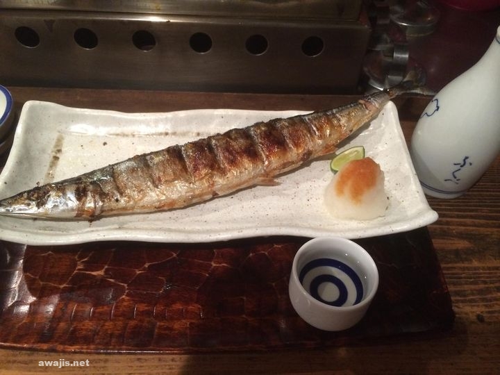 ふくべにて、いつものぬる燗をお願いすると、大将が張り紙を指さしながら「今日から始めました」ってんで、言うなりに初物の秋刀魚。