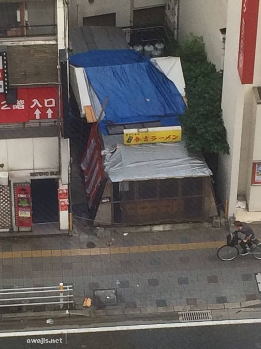 ホテルの窓から向かい側に見える、とてもニッチな立地のラーメン屋。昨日の夜は遅くまで結構流行っていた。気になる。