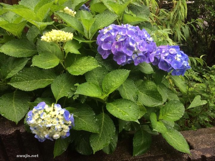 Hydrangea looking pretty in drops of dew. This belongs to the next-door and we get to appreciate it every year, for free :-)