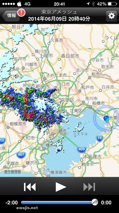 降ってるのは都心方面。千葉はセーフ。寄り道せず、いい子に帰ってきてよかった。