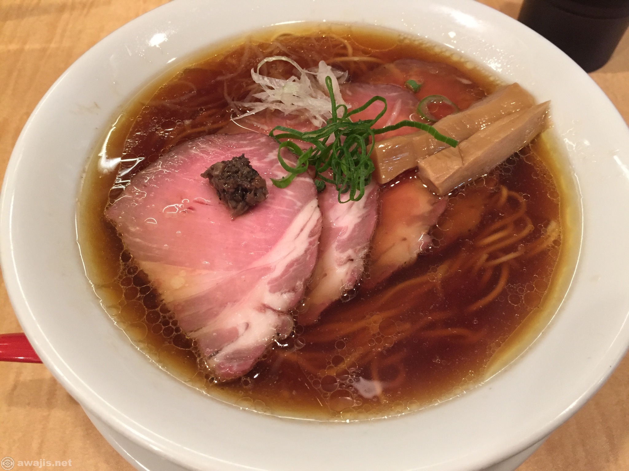 味わい深い醤油味スープに、細めでコシのある麺、焼豚は中華風ではなく洋風のローストポークのよう。