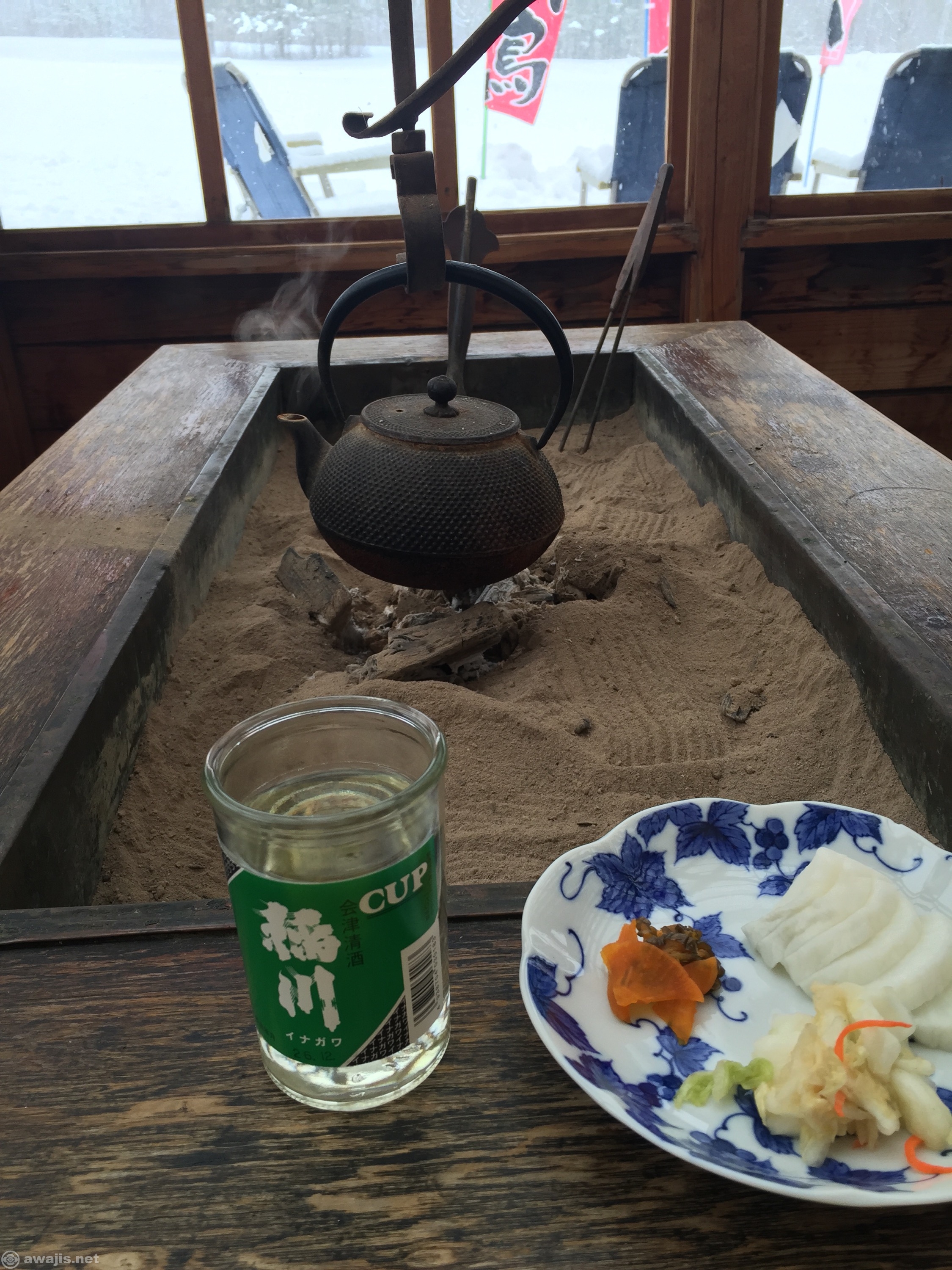 というわけで、ゲレンデ脇の飲み屋で雪見酒モードの入りました
