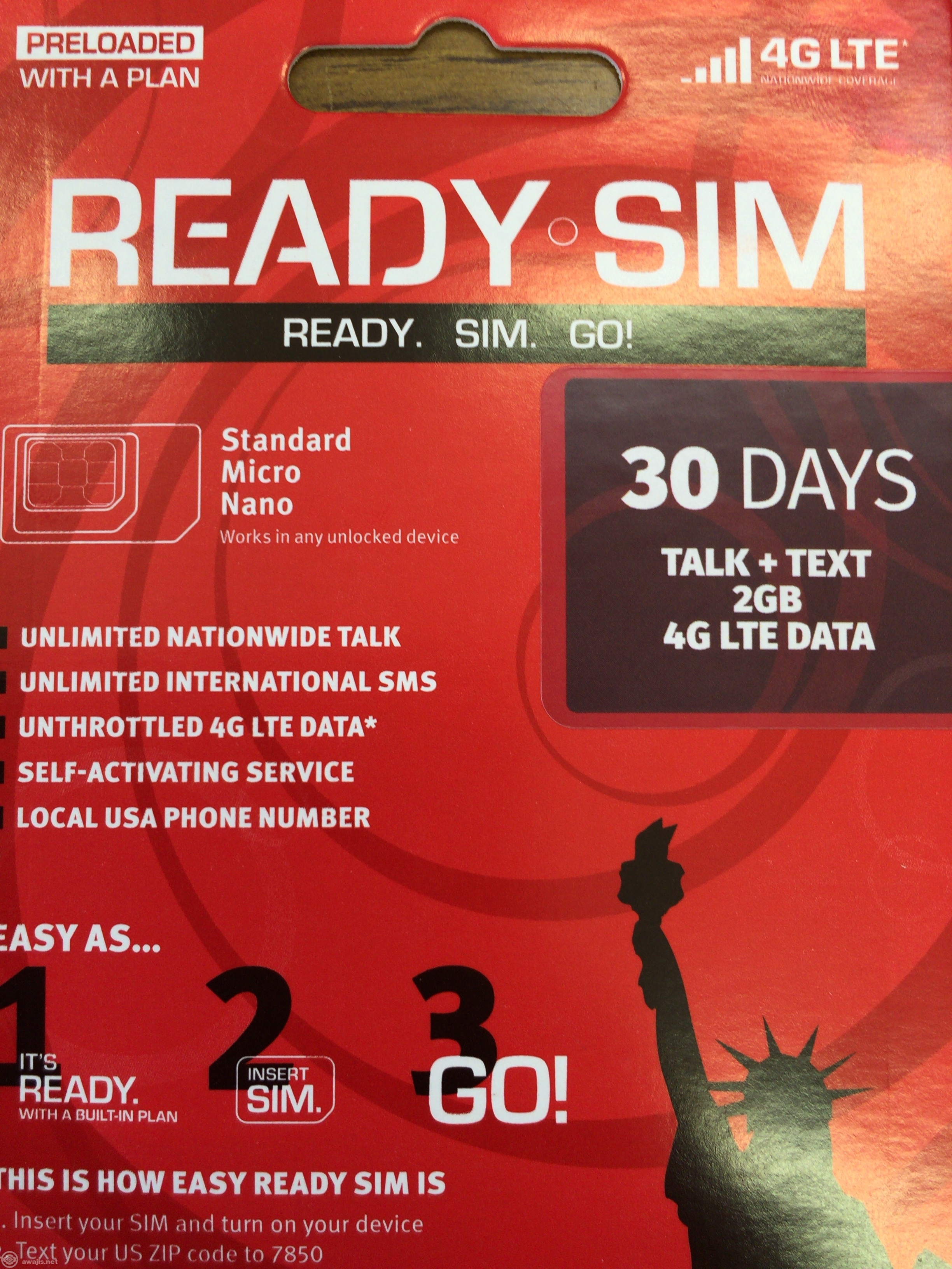 ReadySIMというプリペイドが使いやすそうで、米国のサイトで直接注文して、現地の住所に送ってもらうことも可能なようですが、ちょっと準備が遅すぎて間に合わなそう。まあ米国入りしてから買ってもいいのですが、すぐに店が見つかる保証もないし、それまで通信手段がないのも不安。そこで、割高ではありますが、日本の販売店で在庫があったので出発前に国内で購入しました。