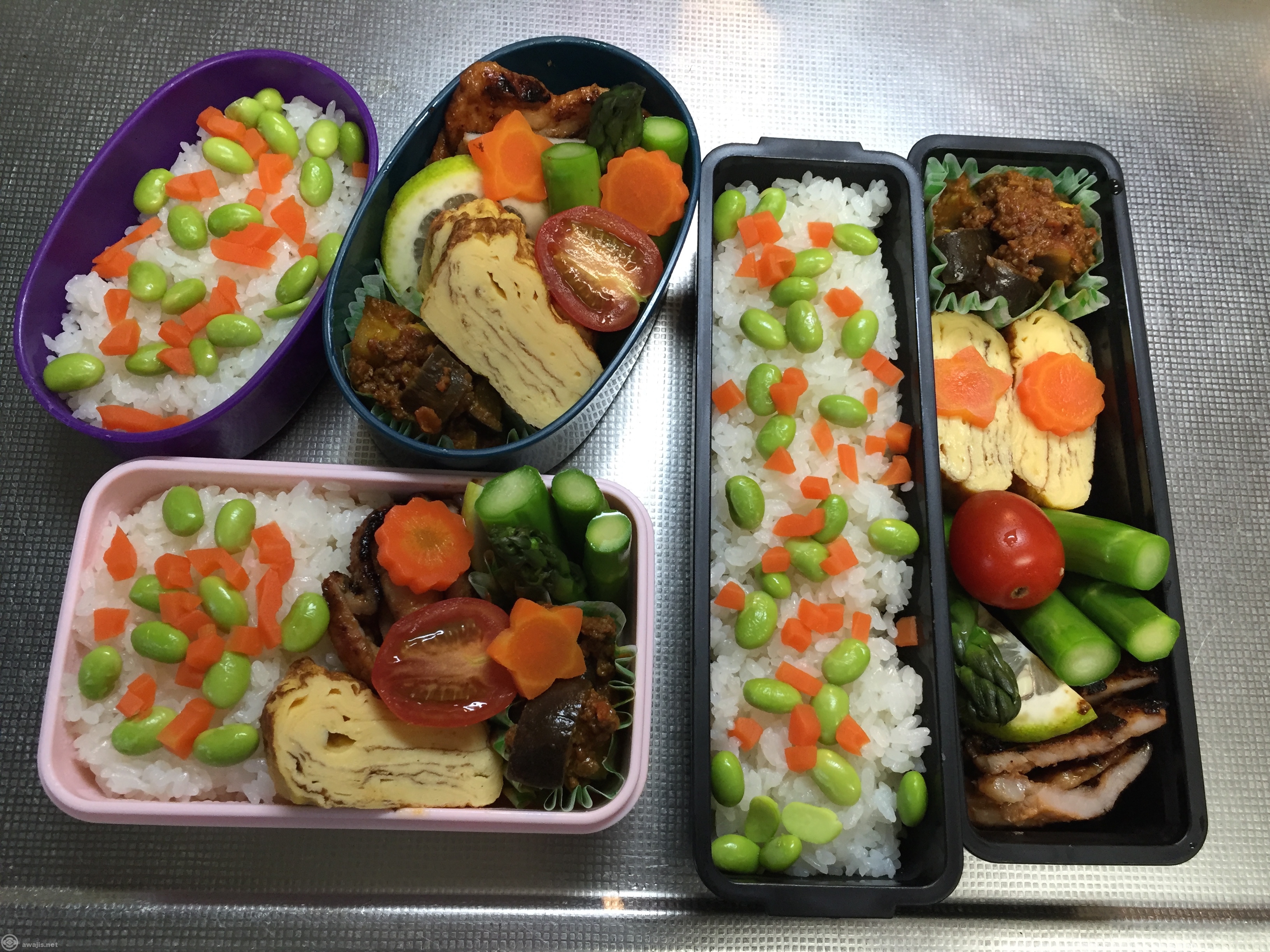ならばと、子どもの弁当作り卒業記念のフィナーレ弁当。私の現在の職場周辺は食事情が大変良いので外食でもよかったのですが、まあ、弁当父さん卒業記念に、3人分お揃いの弁当作りました。弁当作る予定で買い物していなかったので、大したものは入れられませんでしたけど。