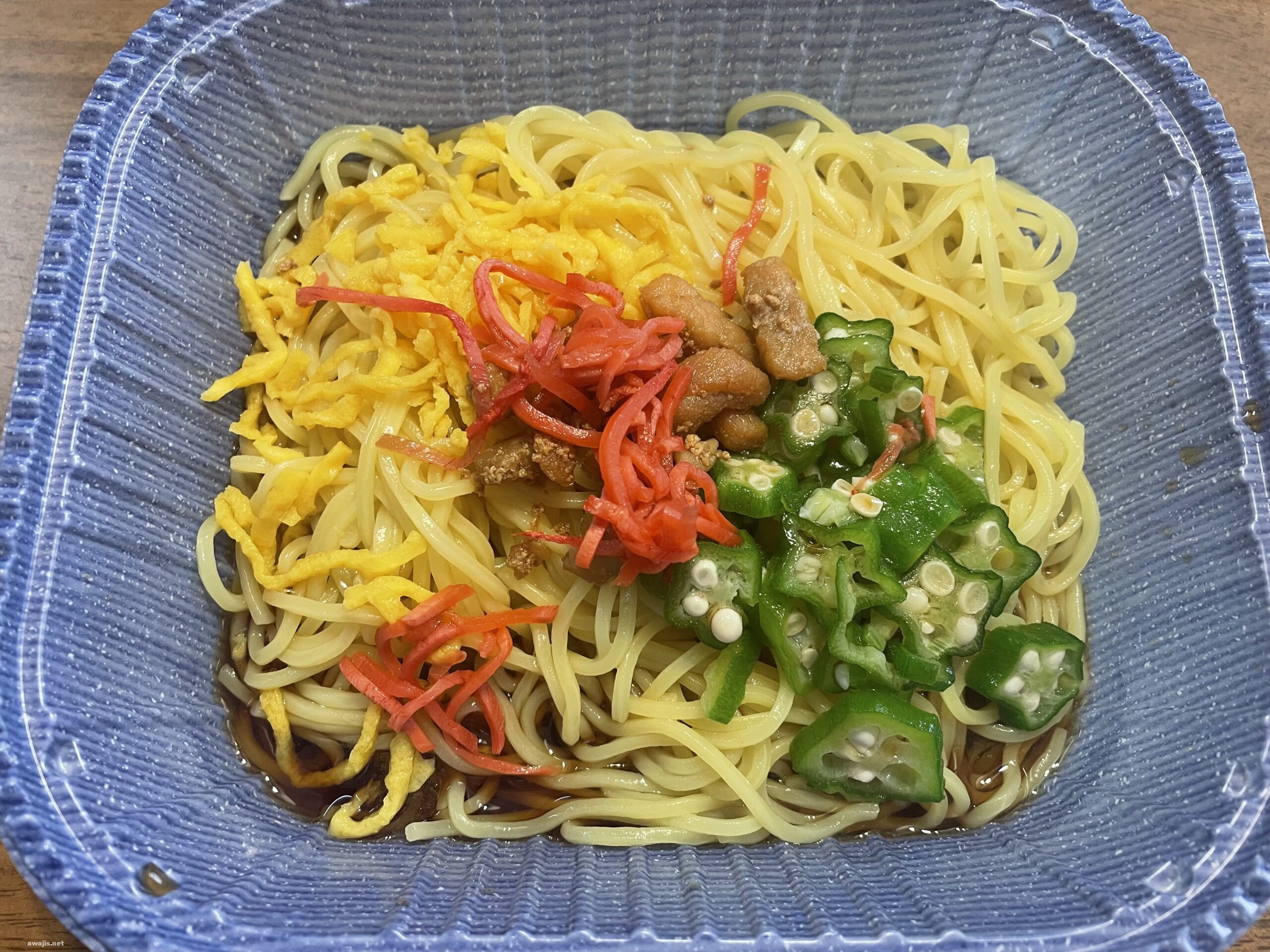 具を乗せ、タレをかければ完成。辛子がついていないのは、まあ許しましょう。