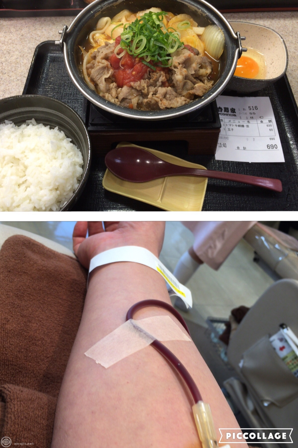 見えぬ力に操られるように吉野家でトマト牛鍋膳玉子付きを食し、すぐに献血ルームで400ccの血液を絞り出す。まるで血液生成機。