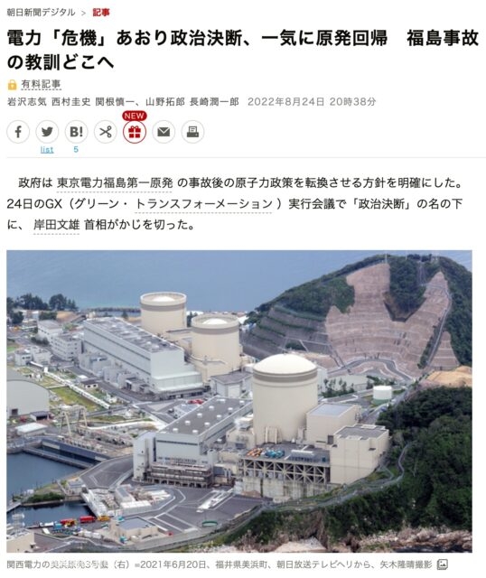 画面越しだと言いやすいのかどうか知らないが、GX実行会議では、しれっと原発に関する重大な方針転換。