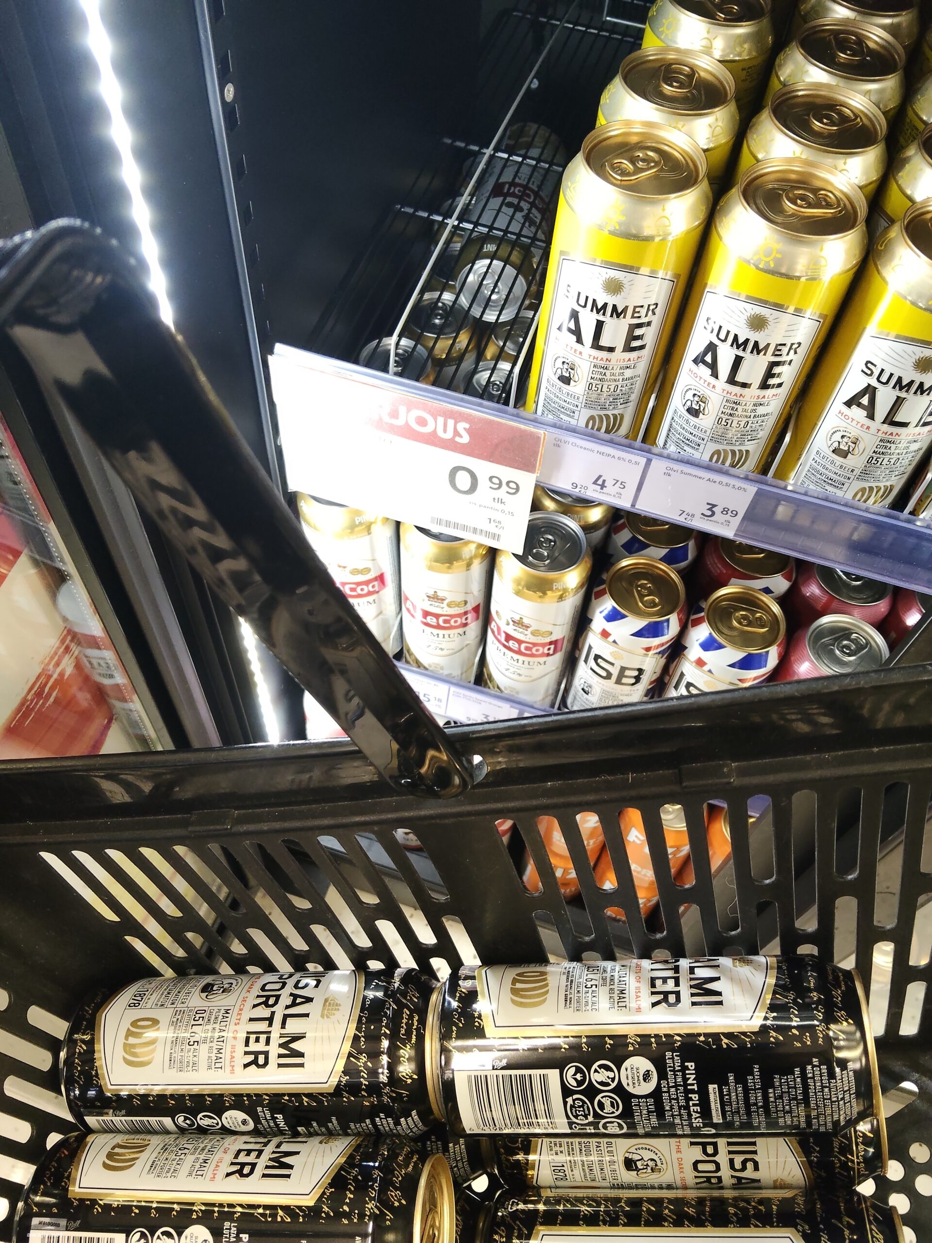 行ってみると、確かにひと種類のダークビールが投げ売り。”Tarjous”という赤札が「バーゲン、特別提供」のような意味の札。Maricaはこう言うの見つけるのが得意のようです。