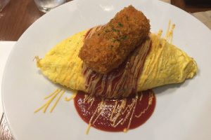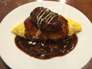 ウリは、手こねハンバーグとオムライスらしい。オムライスは、ケチャップ、ドミグラス、カレーからソースを選べる。他にも、いろいろトッピングを追加して楽しめる。先週はケチャップソースのオムライスに、とろとろチーズとカニクリームコロッケのせ、今週はドミグラスソースのオムレツにハンバーグのせを食べた。いずれも、1200〜1300円くらい。
