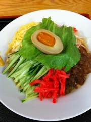 ゴマの風味に酸味とピリッと唐辛子が効いていて、具も錦糸卵、きゅうり、チャーシューに加えて、クラゲもたっぷり乗っていて、頂点にはよく味のしみた味玉が半切れ鎮座。サラダまでついて850円。近くに行く用があればまた行きたいところです。