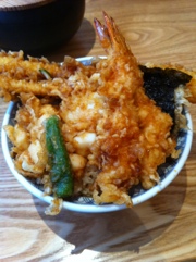 肝心の天丼は、江戸前天丼880円に味噌汁100円、合計980円。この値段で一本穴子が丼から飛び出し、海老が二本、イカ(小柱?)のかき揚げに、半熟ゆで卵の天ぷらが付いているから、コストパフォーマンスはすごくいい。味は、上々ってところか。味噌汁は、豆腐をみじん切りにして趣向を凝らしたのだろうが、豆腐の味も食感もなく、三つ葉が入っていなければ100円の価値はない。総合的にみて、味だけなら40分行列する価値はない。