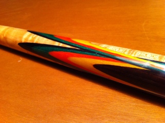 バットはグリップゴムをつけた状態で325グラム、シャフトは11.5ミリ径で120グラム。おそらくモーリのタップがついてます。重さのわりに重みを感じないのは、バランスがいいからか。