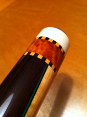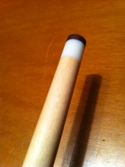 突きおわってから、従業員の永元さんに「いいキューないの?」というと、すぐに「あるよ」といって奥からLongoniのキューを持って来てくれました。美しいクロス竹の子にひとめぼれ。