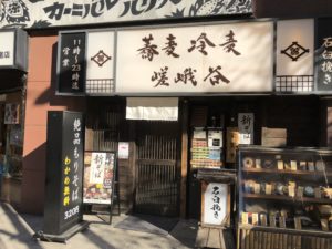 ふたつめは、そば新なきあとに目をつけた、蕎麦屋の「嵯峨谷」。何度か前を通り、石臼挽きという看板が気になっていましたが、入ってみると立ち食いではなく、意外と普通の蕎麦屋。