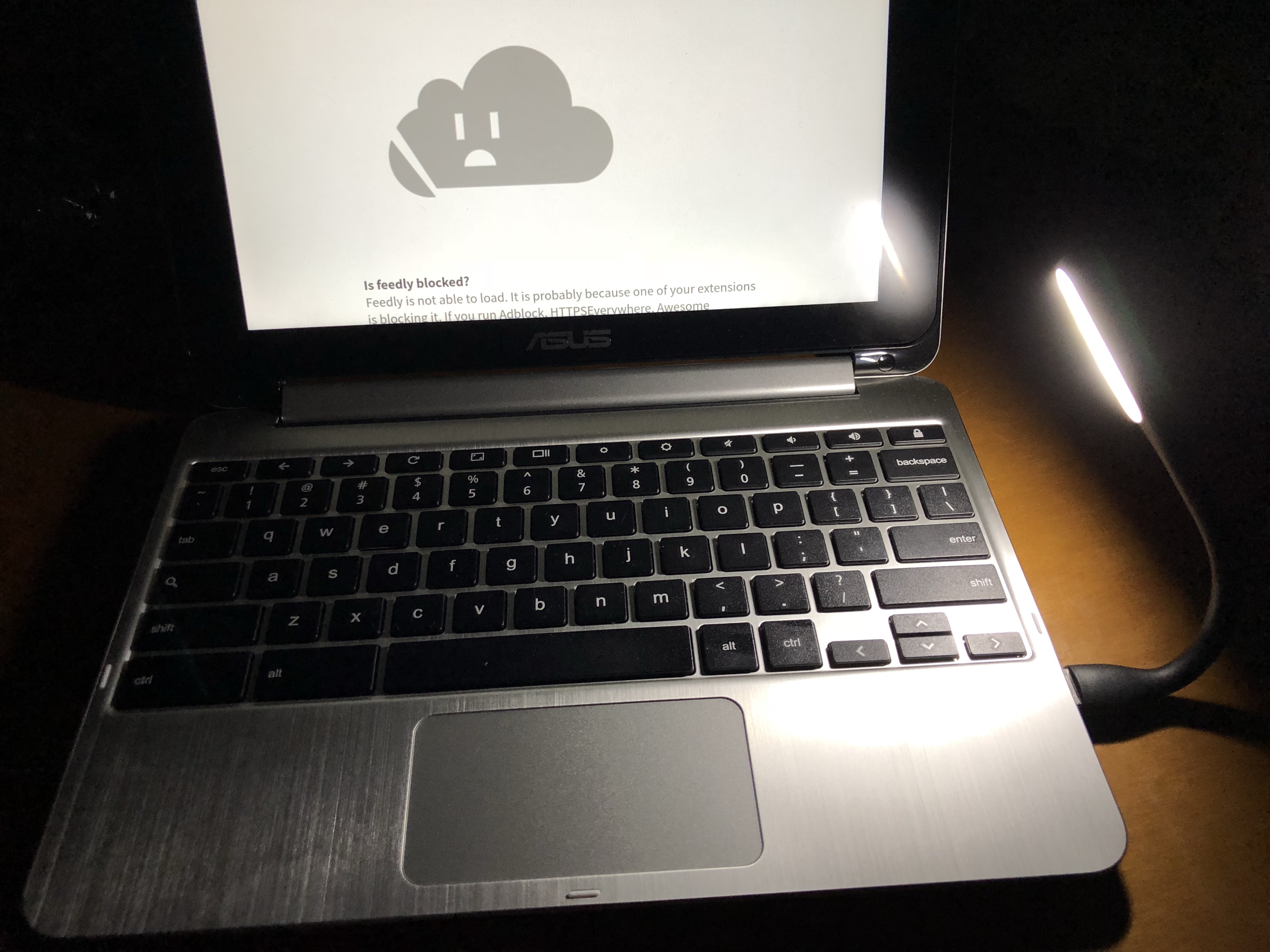 ASUS Chromebook Flip C101PAのキーボードには、バックライトがついていない。ある程度の暗がりでもタッチタイプできるが、やはり手元が確認できる方が便利なので、コンパクトなUSBライトを購入した。夜の車内や、暗い講演会場などで効果を発揮するかもしれない。