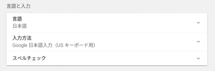 かな漢字変換は、Google日本語入力が搭載されている。変換精度はまあまあだが、変換で使うキーの割当が異なるので困る。MacでATOKやことえりに慣れ親しんでいる場合は、設定の言語と入力で入力方法を設定できる。