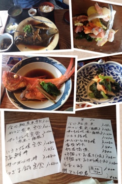 弥生はカレイの煮つけ定食、うちらは金目鯛の煮つけ、刺身盛り合わせ、赤貝のぬたを単品で注文。煮つけはいずれも丸一匹どーんと料理されボリュームたっぷり。味も盛り付けもとても上品で目にも舌にもよし。昼間から冷酒が進んでしまいました。