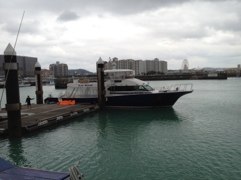 当日は風も強く、波もかなりうねっていたので、かなりの難航が予想されました。案の定、午前の便では半分以上の客がグロッキー状態で、クジラを観るどころではなかったという添乗員の脅しもあり、あっさり500円支払って酔い止め購入。一本はいちばん心配していたAサイ先生に。酔う前に酔ってしまえと、出航を待つ間、二人でビールをぐびぐび(薬とアルコールを同時に服用なんて、良い子は真似してはいけません)。