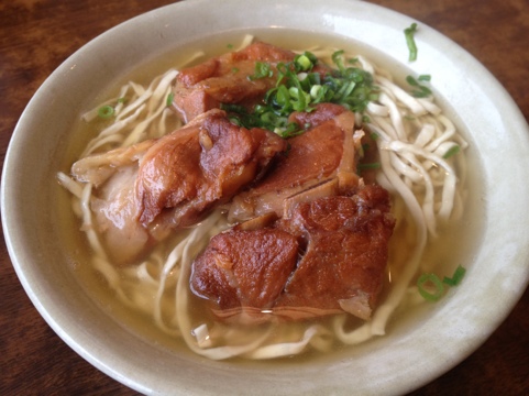 沖縄美ら海水族館からの帰り、まずは腹ごしらえをと、お菓子御殿を通過して、恩納村の「なかむら」という沖縄そばのお店に。