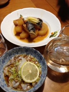 奥さんが作ってくれた三杯酢に入れ、弥生がおろしてくれた大根と合わせいただく。やはり今までのイメージと異なり、美味。あまりコリコリが好みじゃない私向けには、極薄に削ぐのがポイントかも。