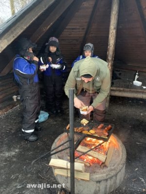 釣りを1時間ちょっと楽しんだ後、ガイドさんが準備してくれていたBBQと温かい飲み物。