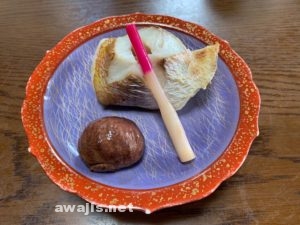 焼き物は、石鯛(だったかな?)の塩焼きに、立派な栗の渋皮煮。続いて、米なすの味噌田楽と、茶碗蒸し。