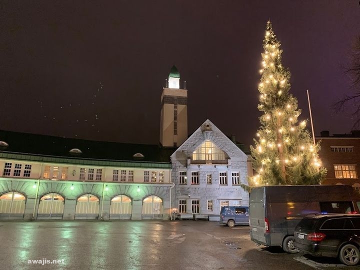 ちょっと前に通ったときに、なにやらはしご車が作業してたけど、ツリーの電飾してたのか😲